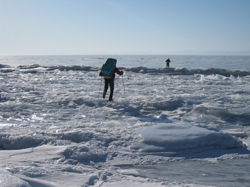Почти везде подход к берегу завален битым льдом.