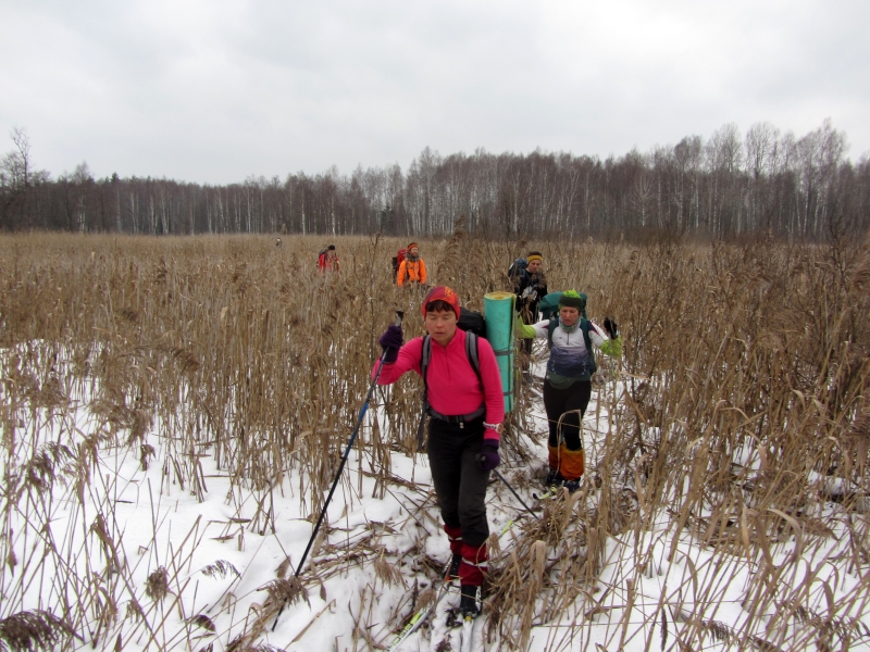 В зарослях тростника.