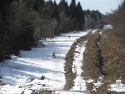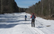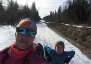 Алёшу я тащила на резинке - иначе он не согласился бы пойти на лыжах в апреле.