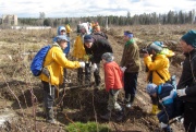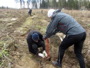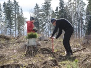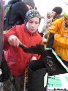 Сажаем жёлудь в мешок-горшок. |