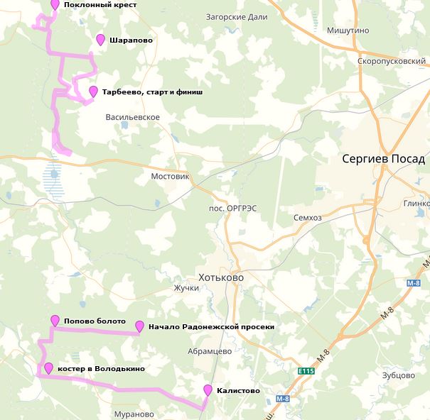 Вокруг Тарбеево, Радонежская просека - Калистово
