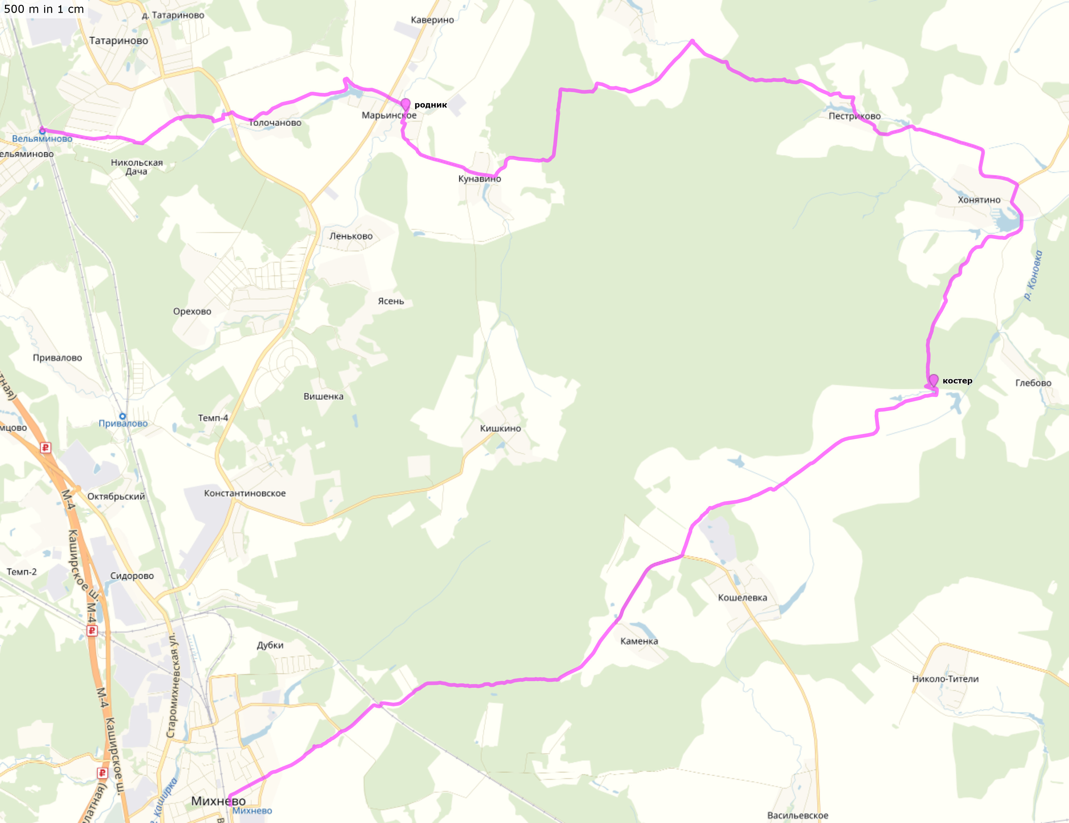 13 апреля 2019Беговой поход подгруппы D Вельяминово – Толочаново - Марьинское – Кунавино - Пестриково - Хонятино - пруд на р.Коновке (обед) – Каменка – Михнево Объява в Гугл-группе Трек (файл .gpx для скачивания, 33 км) Трек nakarte |