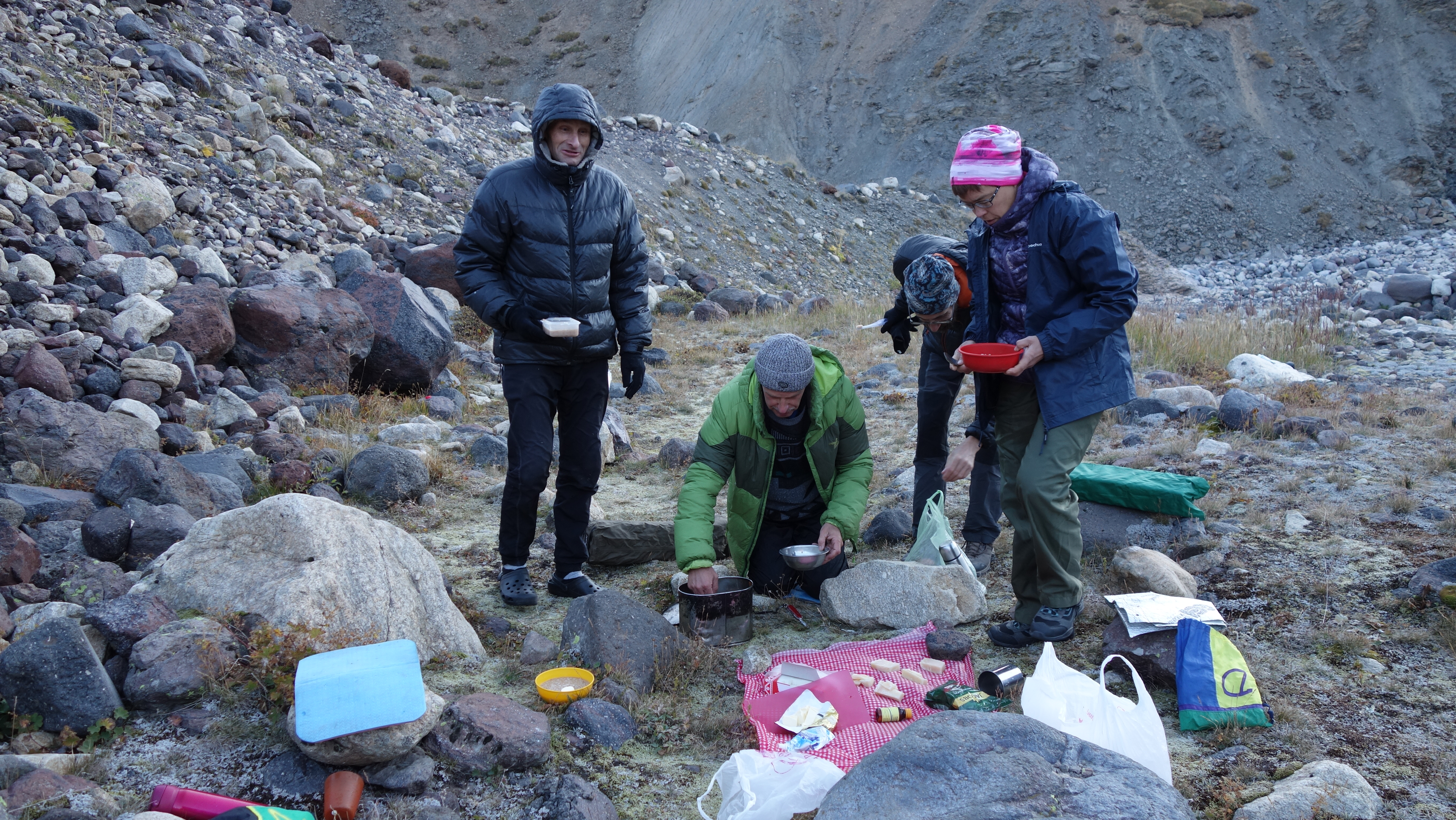 Утро 15 сентября в долине Каракая-Су, завтрак.