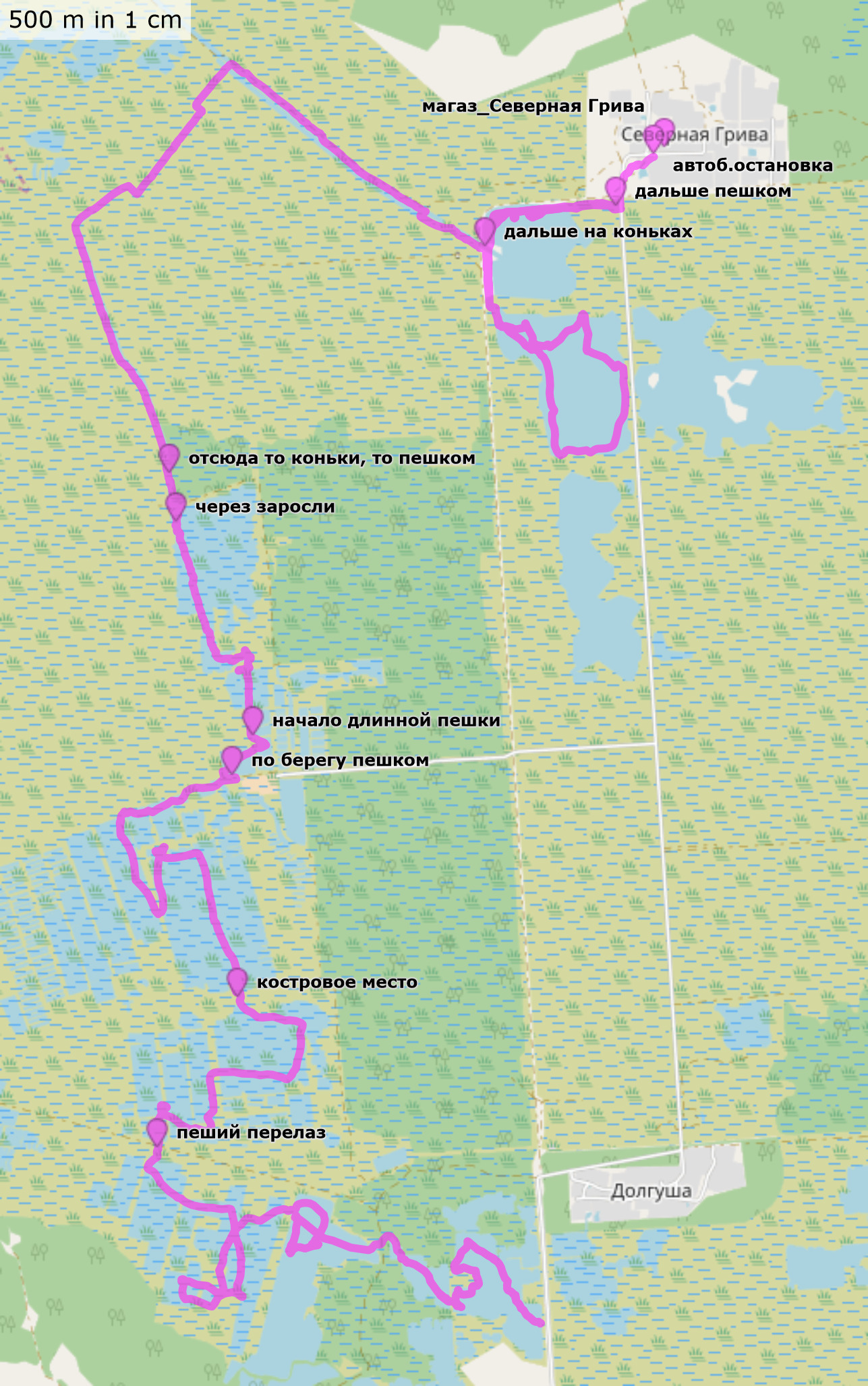 Трек с точками (30 км, файл .gpx для скачивания)