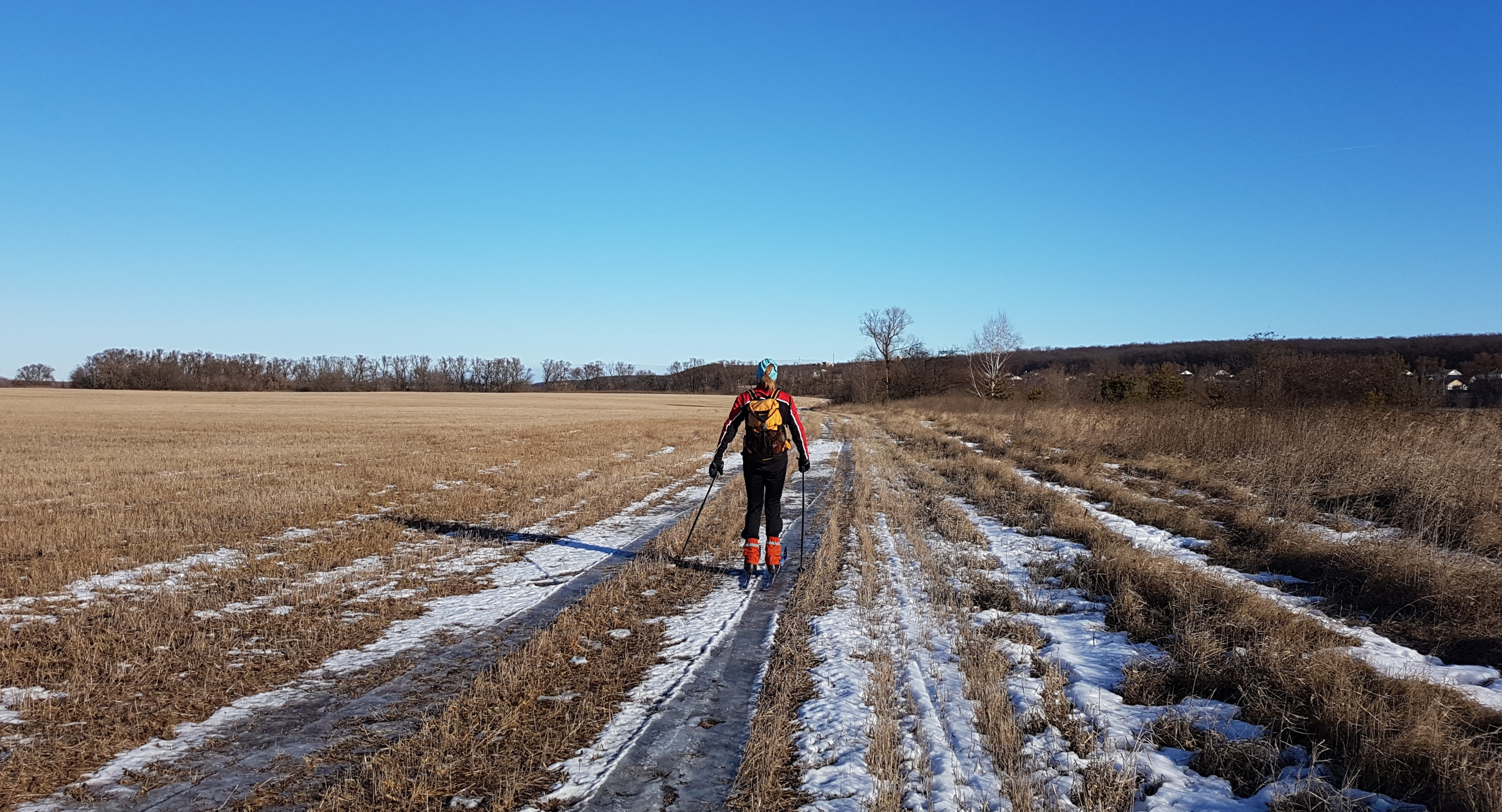 В долине Дона снега почти нет. И обычно не бывает, как нам сказали позже.