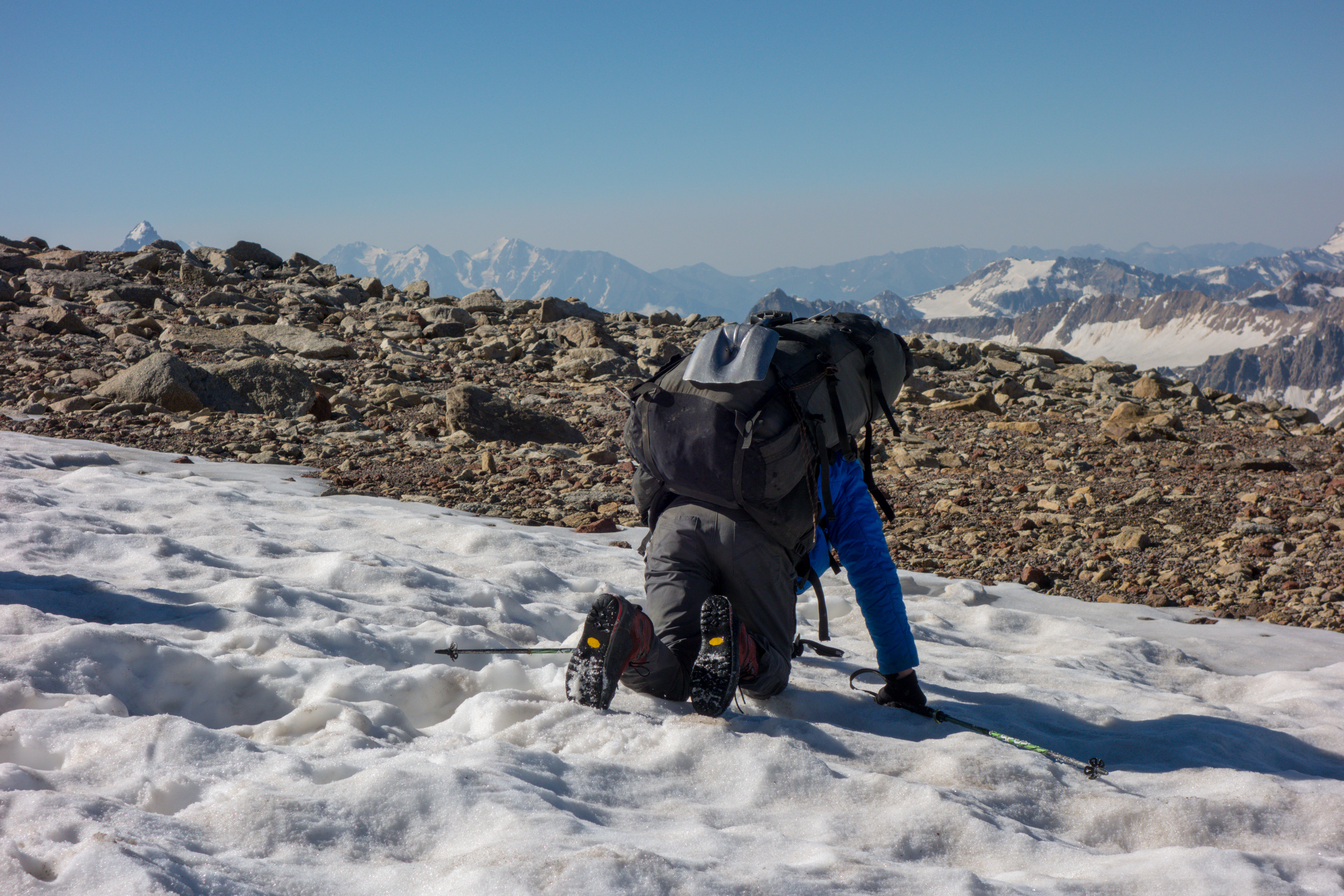 Здесь снег проваливается, ползком проще.