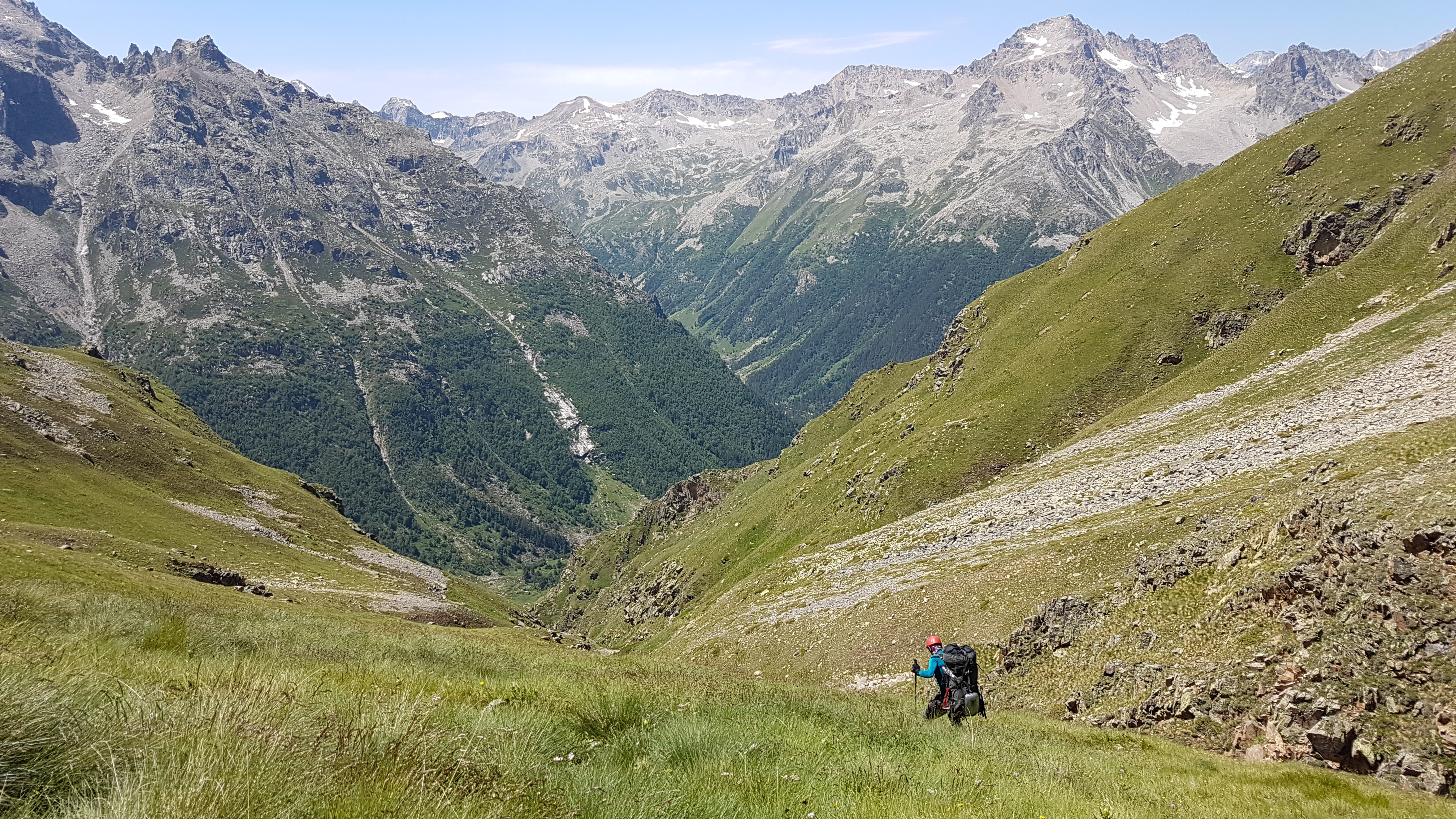 Спуск в долину рек Кубань и Уллу-Кам вдоль реки Актерек.