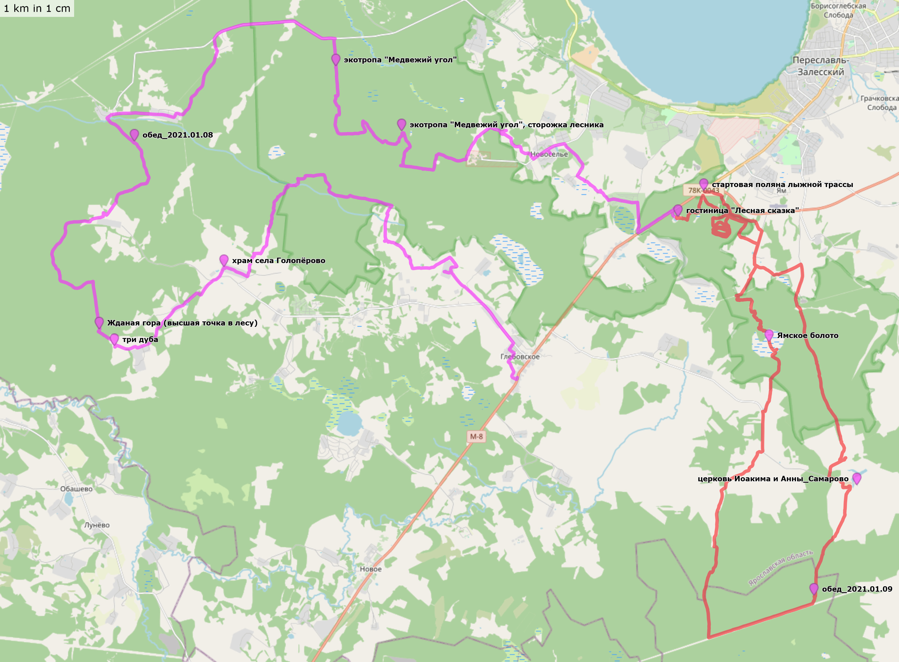 Лыжный поход с ночёвкой в гостинице "Лесная Сказка" вблизи Переславля-Залесского 61+43 км Треки и точки (61 + 43 км, файлы gpx для скачивания) Треки и точки nakarte Треки и отчеты в Страве: день 1 (Глебовское – Романка - Переславль-Залесский) и день 2 (Переславль-Залесский - Самарово - Переславль-Залесский) Несколько фото и видео в моём ФБ Про подошву лыжного ботинка в моём ФБ |
