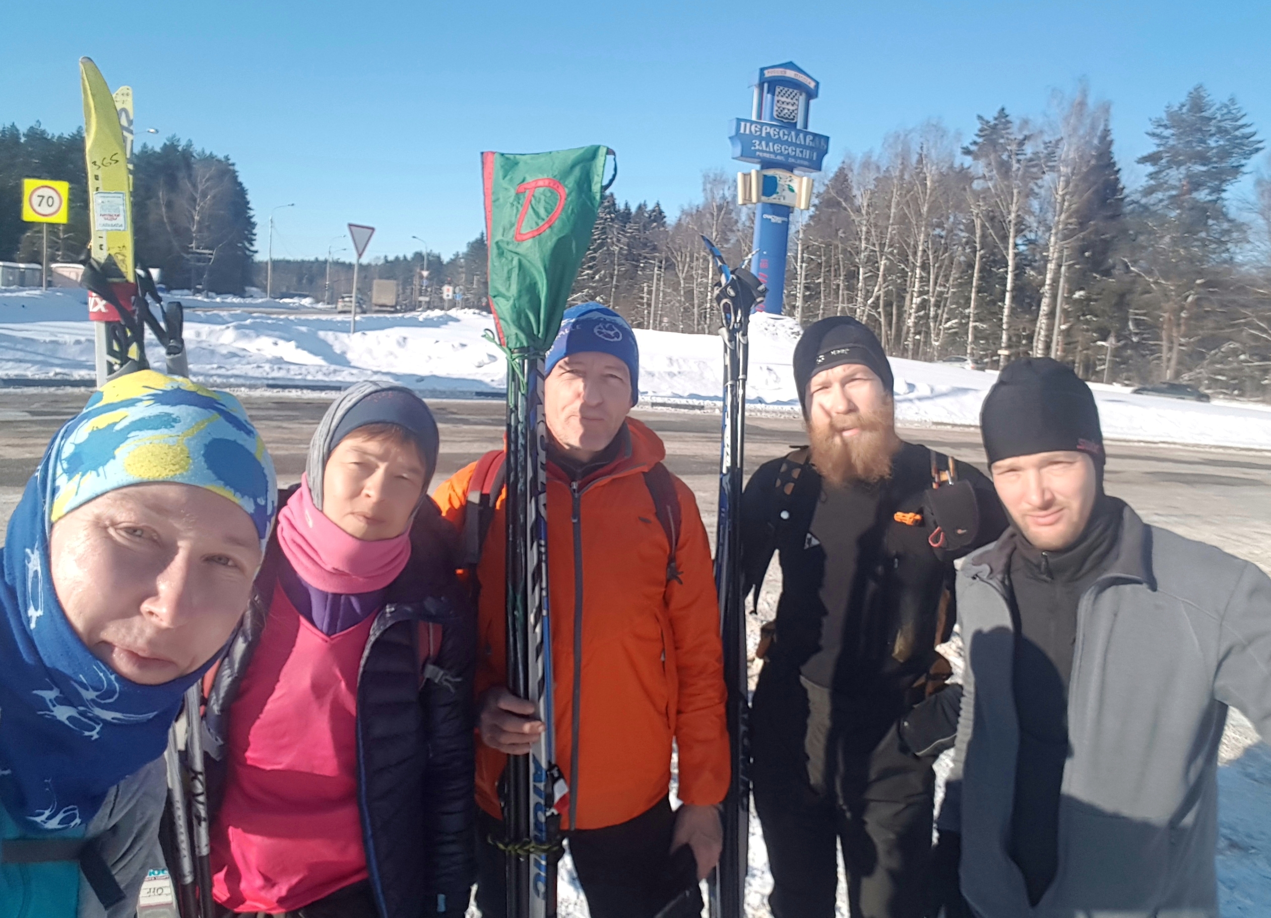Утро 23 февраля. Вышли из такси на объездной Переславля, рядом со стартовой поляной местной лыжной трассы.