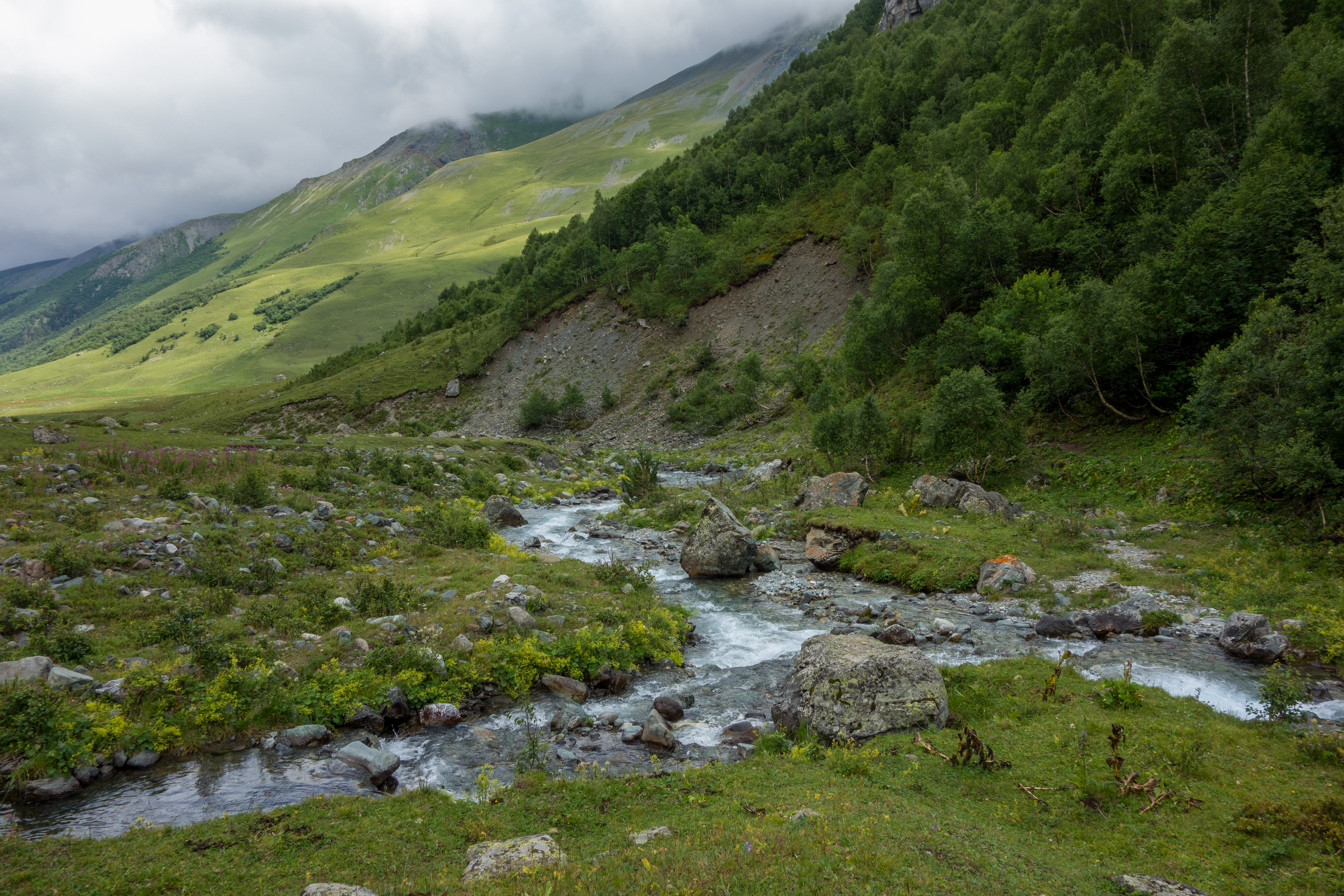 Река Кяфар-Агур (слева) и впадающий в нее ручей.