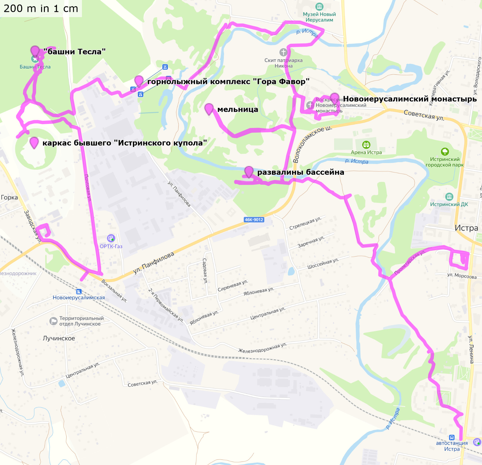 16 ноября 2021Бего-пешеходная экскурсия. Новоиерусалимская – «башни Тесла» (заброшенные испытательные стенды Высоковольтного научно-исследовательского центра Всероссийского электротехнического института (ВНИЦ ВЭИ) в Истре) – горнолыжка «Гора Фавор» - Воскресенский Новоиерусалимский Ставропигиальный мужской монастырь - Истра. Трек и точки (файлы .gpx для скачивания, 14 км) Трек с точками nakarte Отчет в Strava Некоторые фото в моём ФБ |