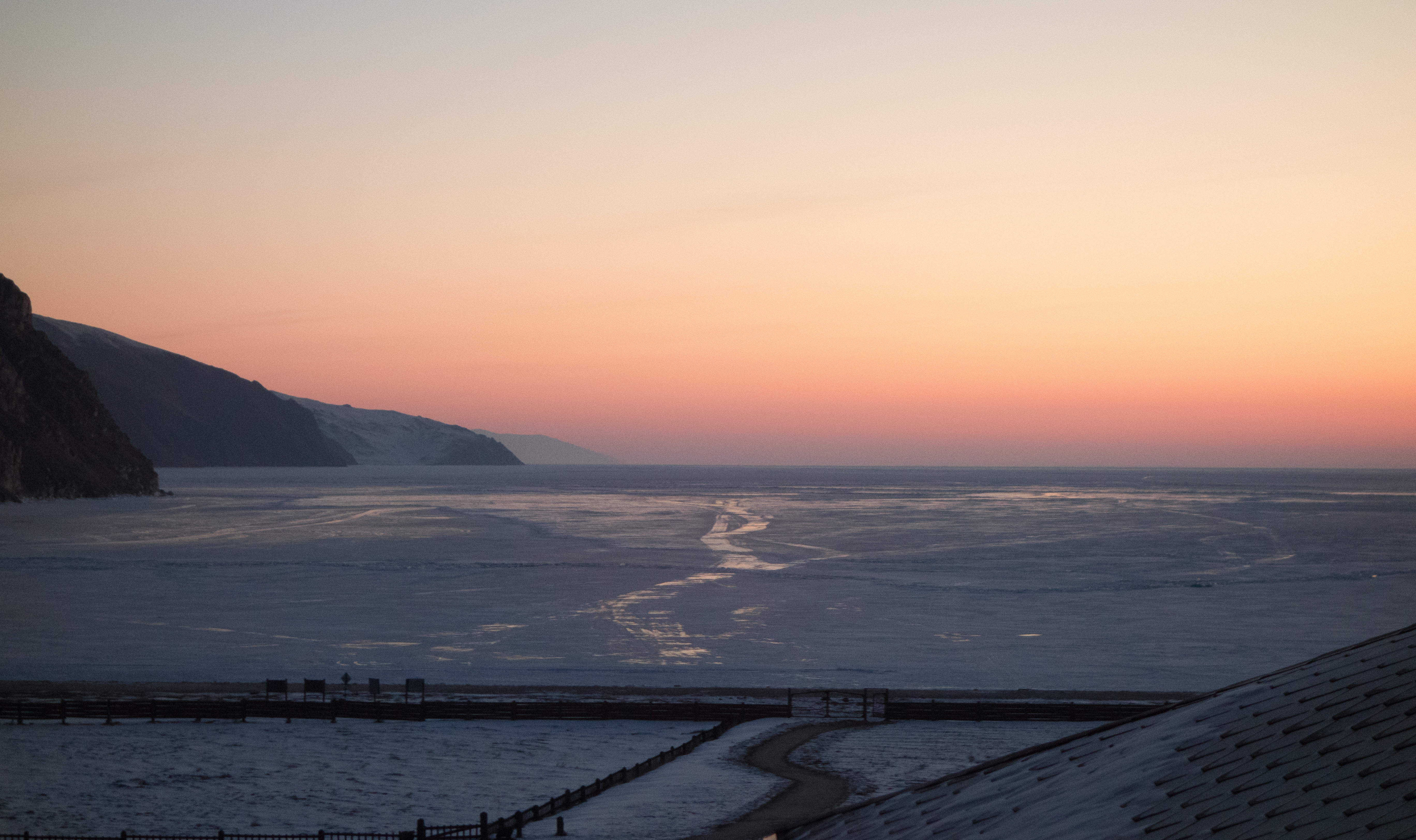 Утро 23 февраля. Бухта Ая, вид из окна нашего номера.