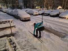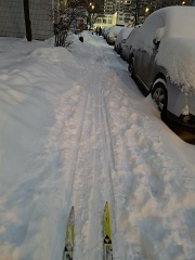 После ночного снегопада лыжи можно надевать прямо около подъезда.
