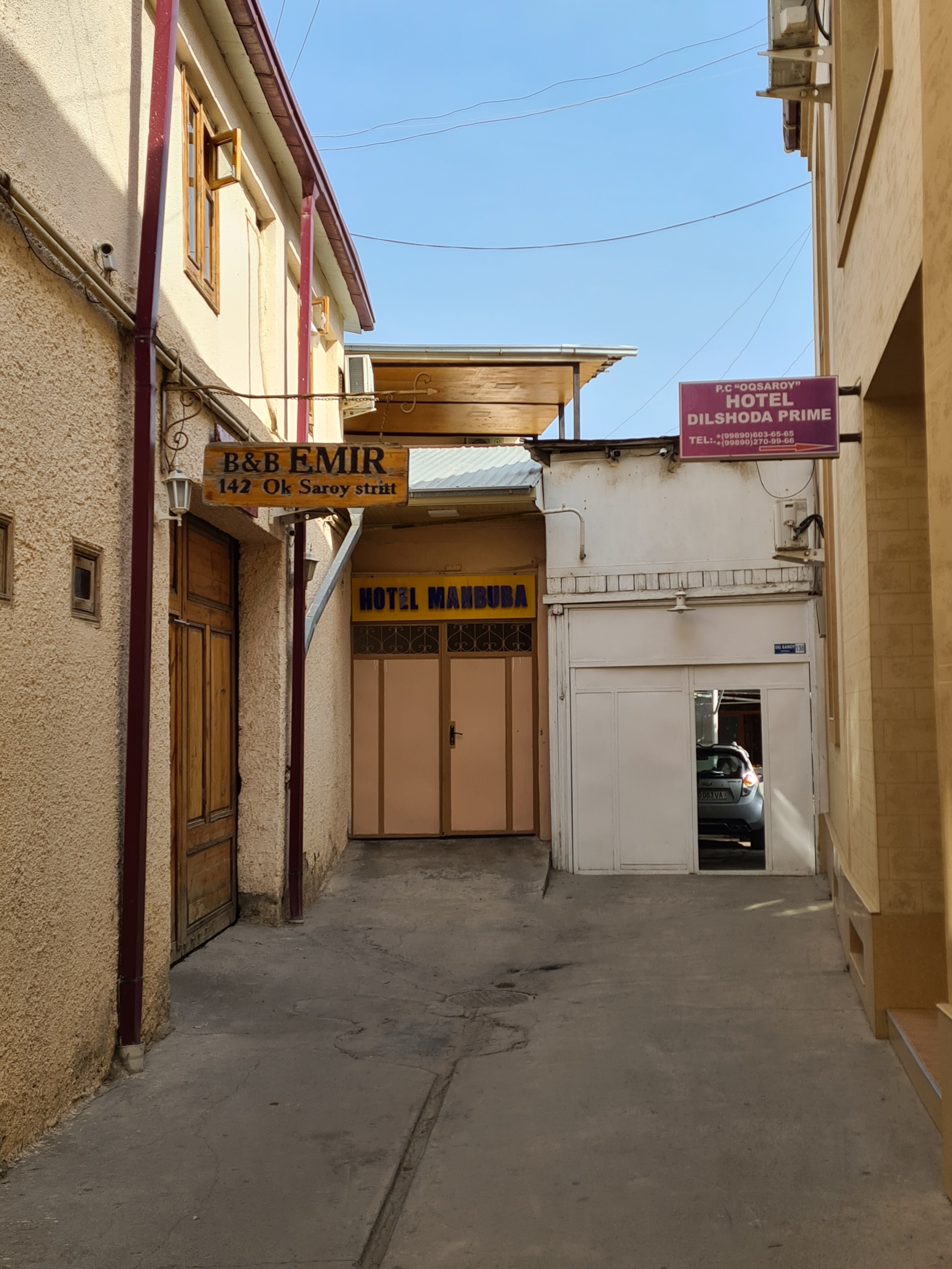 Несколько входов в гостиницы, включая нашу.