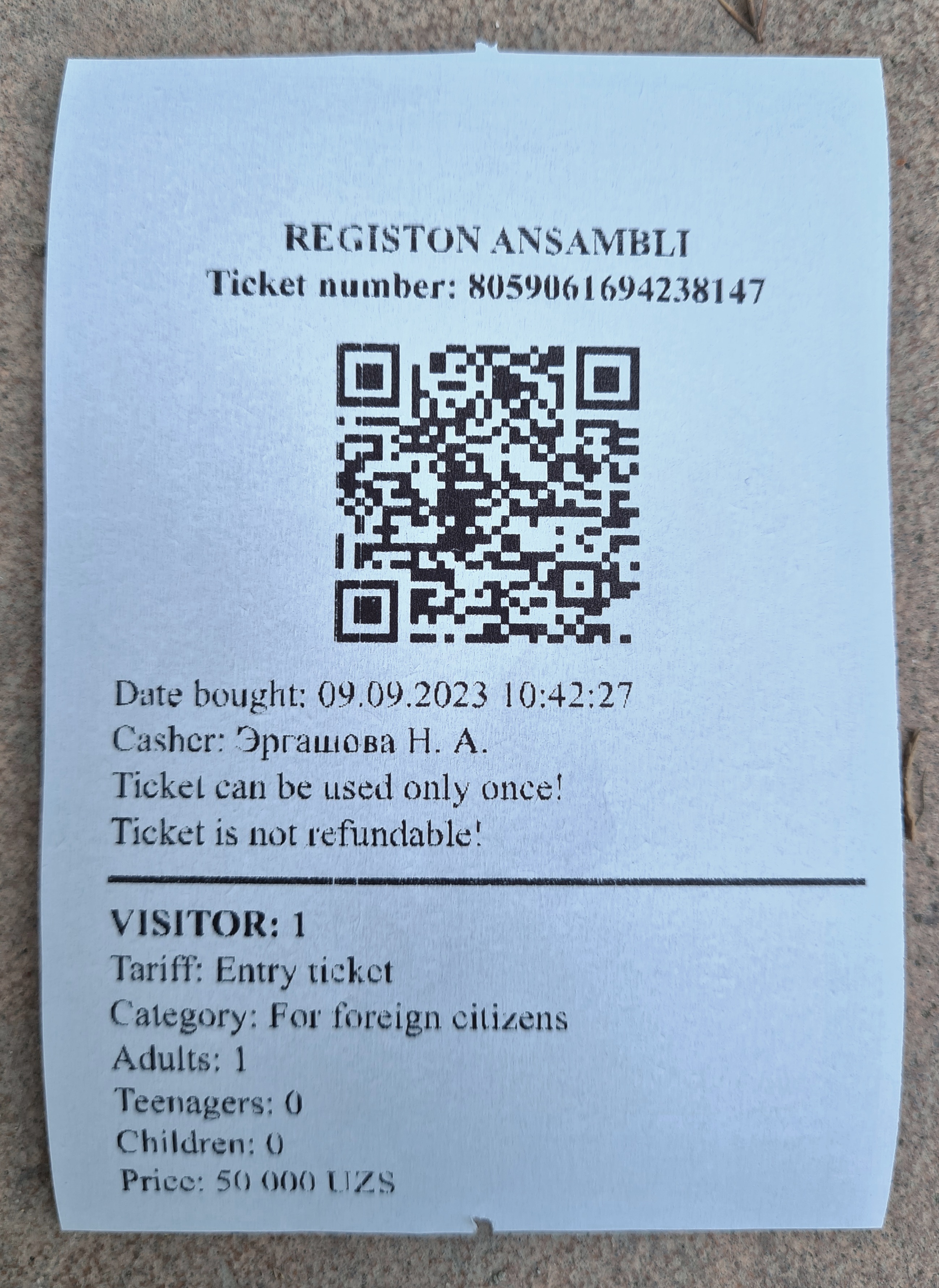 Билет в Регистан.