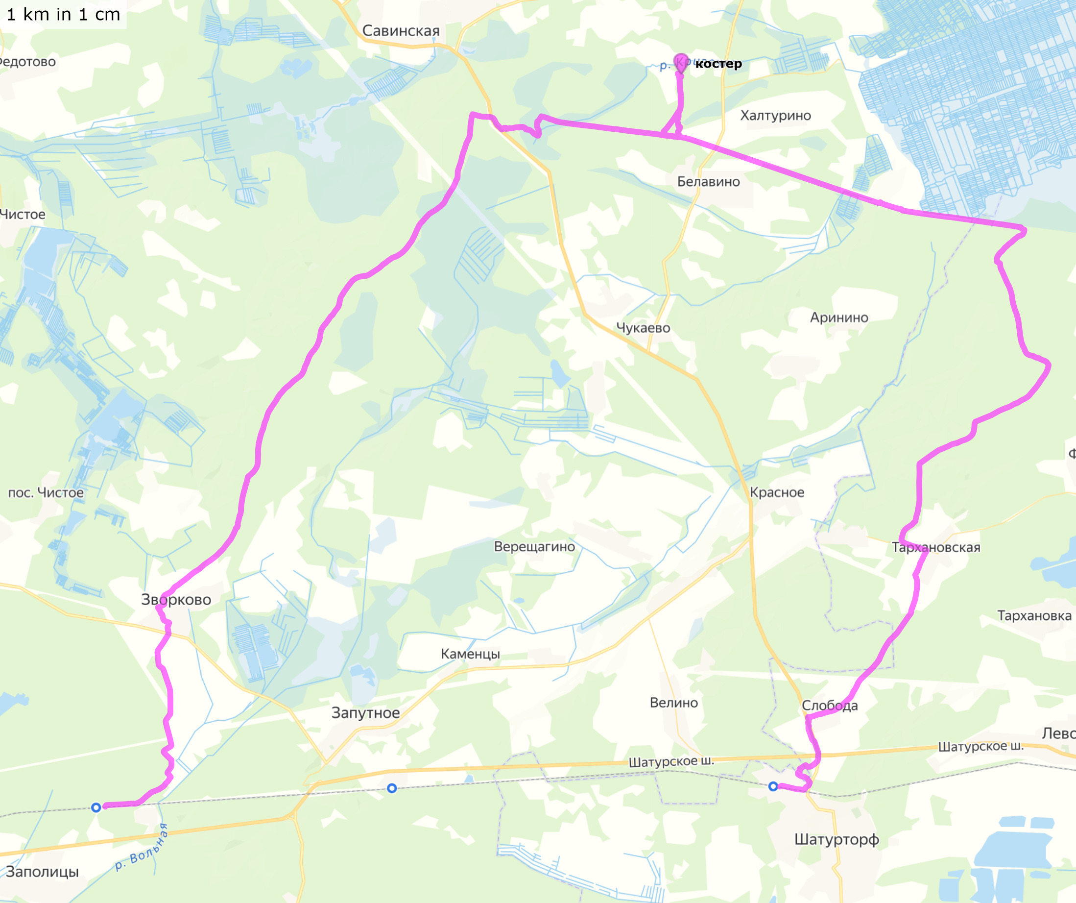 Трек с точками nakarte (42 км)