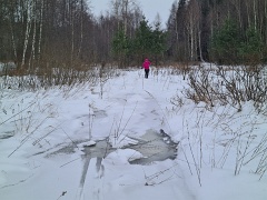 Запруженная бобрами речка Жуковка замерзла не очень хорошо. |