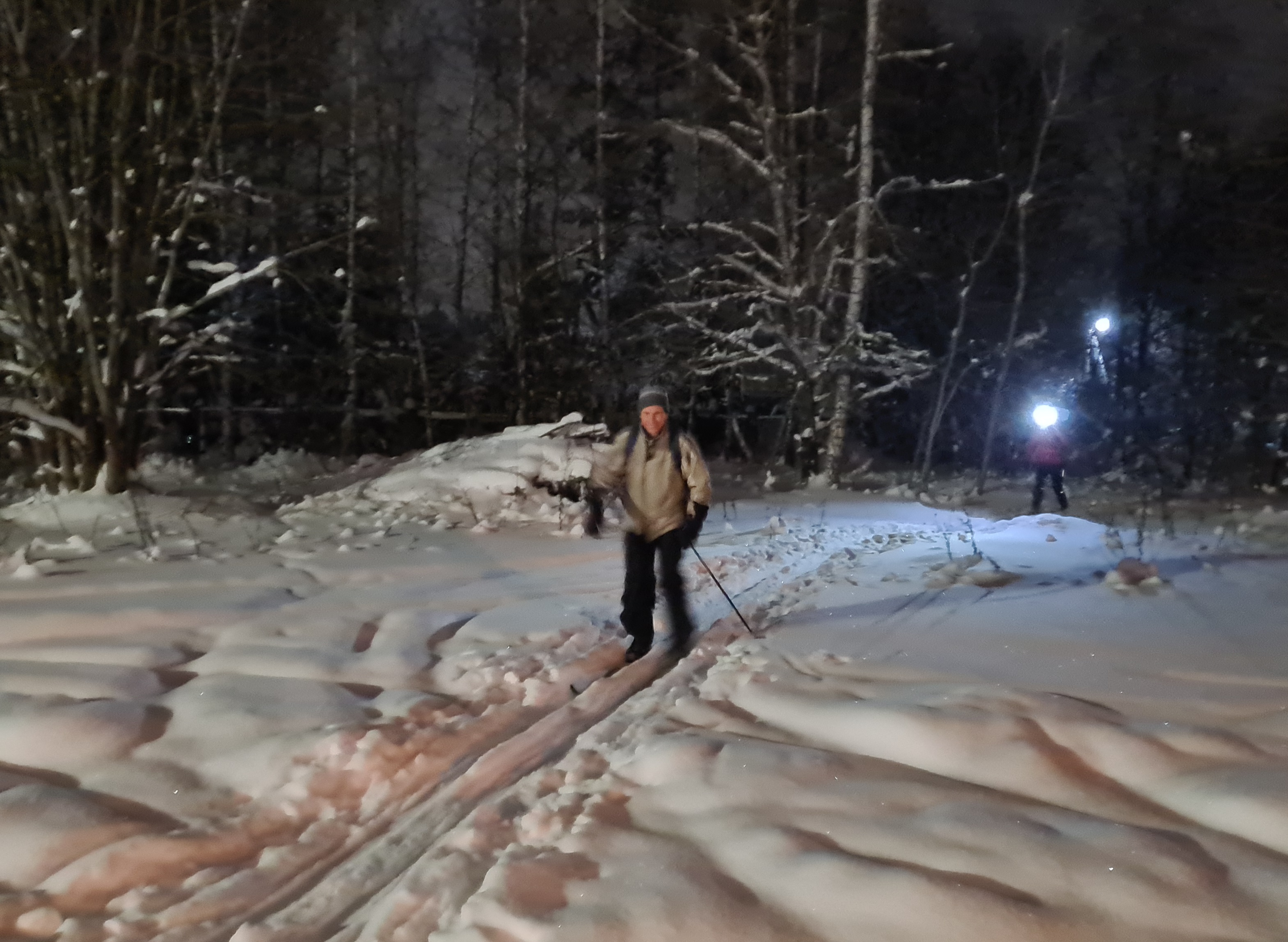 Калистово. У Гриши и Димы по одной лыжной палке.