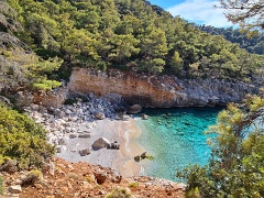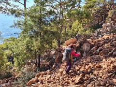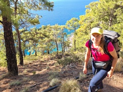 Sidyma (некрополь и акрополь) - Yediburunlar - Big Pebble Beach (ночевка 1) - Asarardi Beach (ночевка 2) - пляж и крепость Kalabantia - Paradise Beach - дикий пляж (ночевка 3) - Kabak - Tektaş Beach - Actas Beach - Faralya - Долина бабочек (ночевка 4) - Hisar, 14+8+5+12+0,7 км