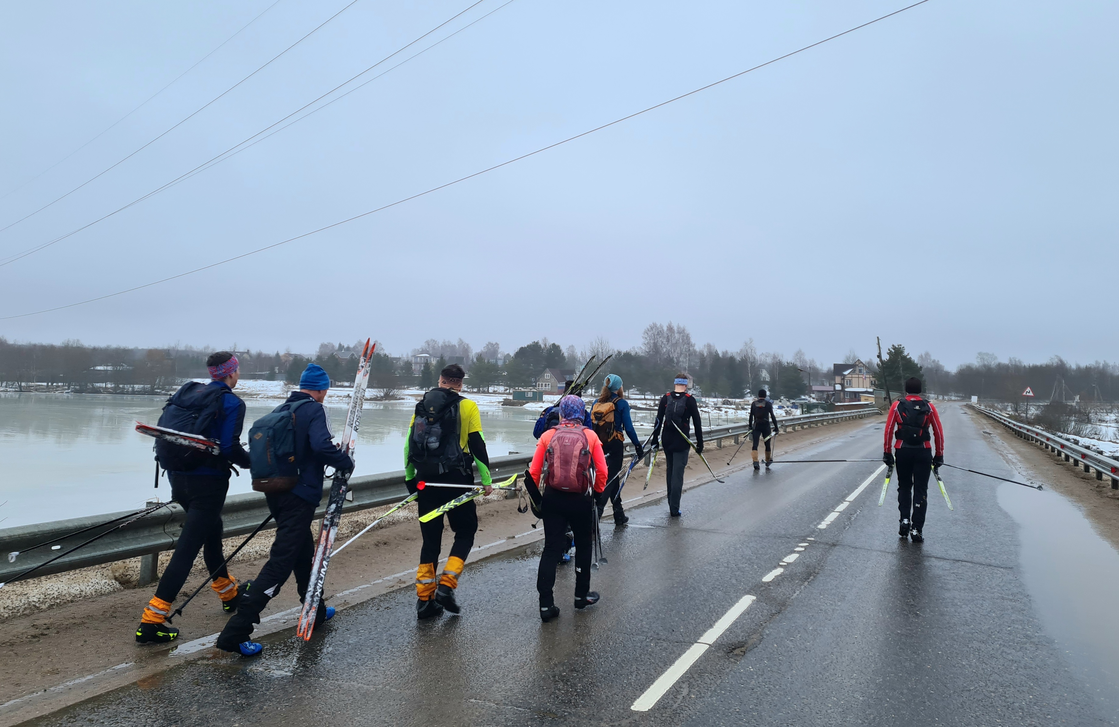По дамбе Таболовского пруда. "Парад по дамбе в лыжных ботинках" ((с) Слава Журавлев).