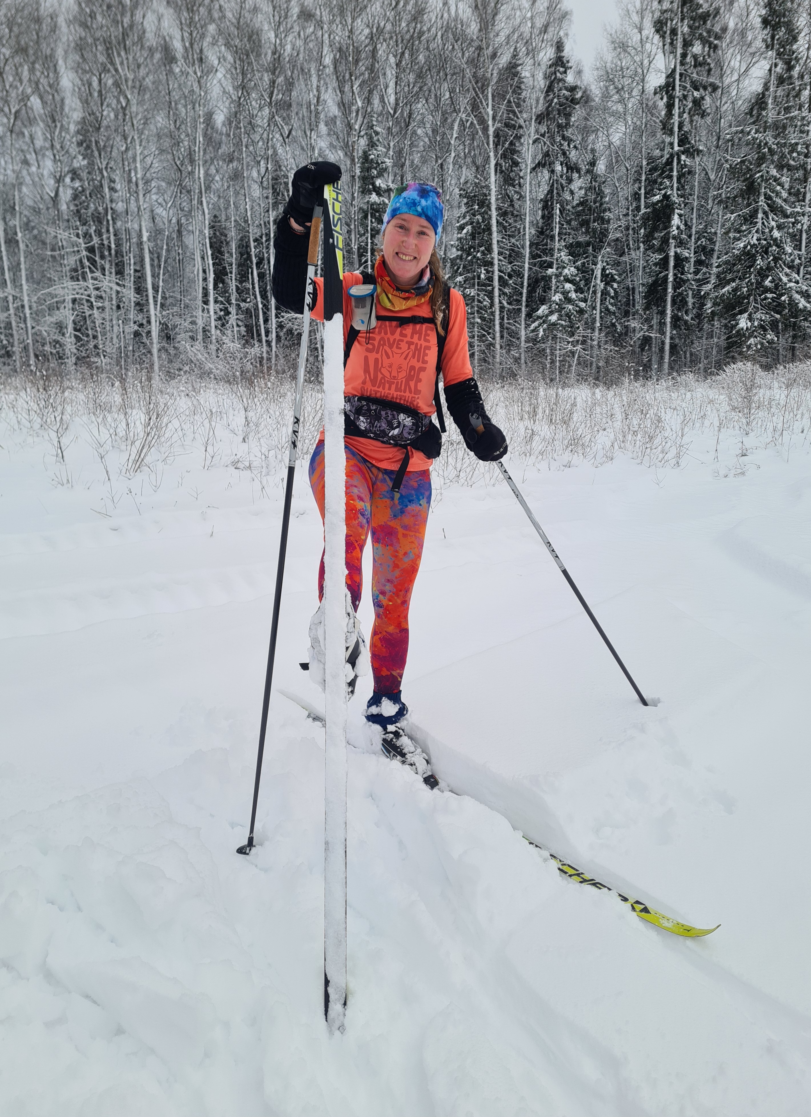 Мокрый снег налипает на лыжи.