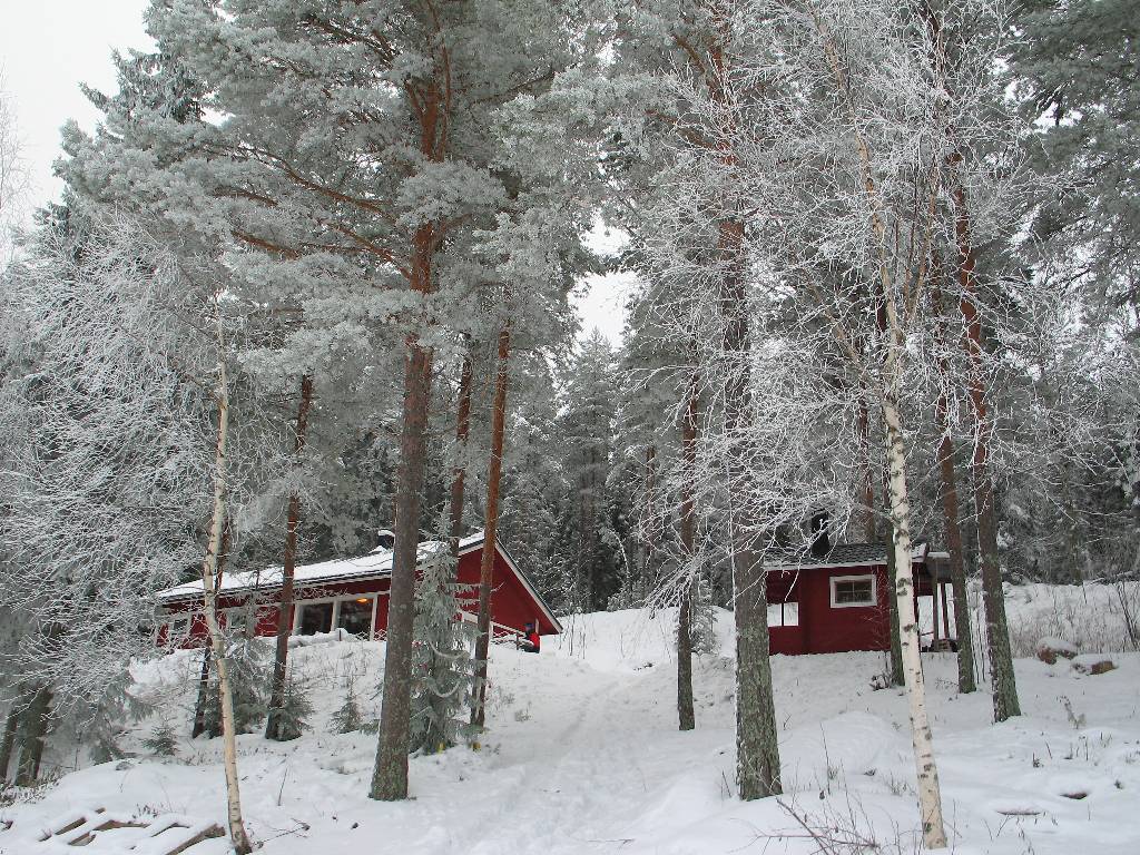Наш коттедж (слева) и баня. Вид с берега озера. 7 янв. 2006.