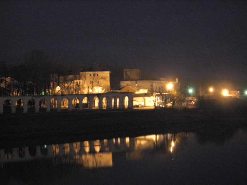 23 декабря. Вид на Ярославово Дворище и Торг с пешеходного моста через р.Волхов.