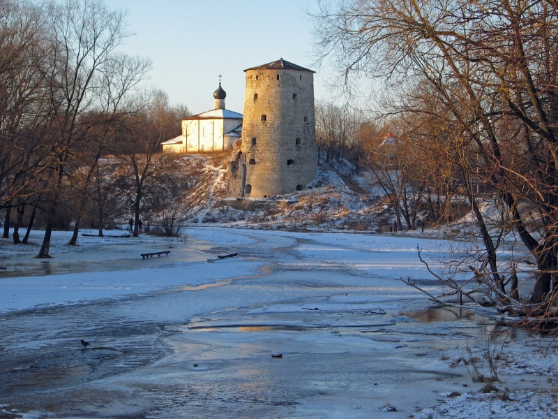 3 января. Церковь Косьмы и Дамиана и Гремячая башня на берегу Псковы.
