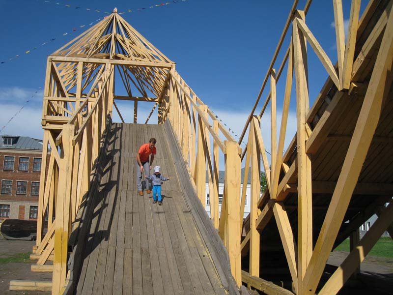 Гигантская деревянная горка в Коломне.