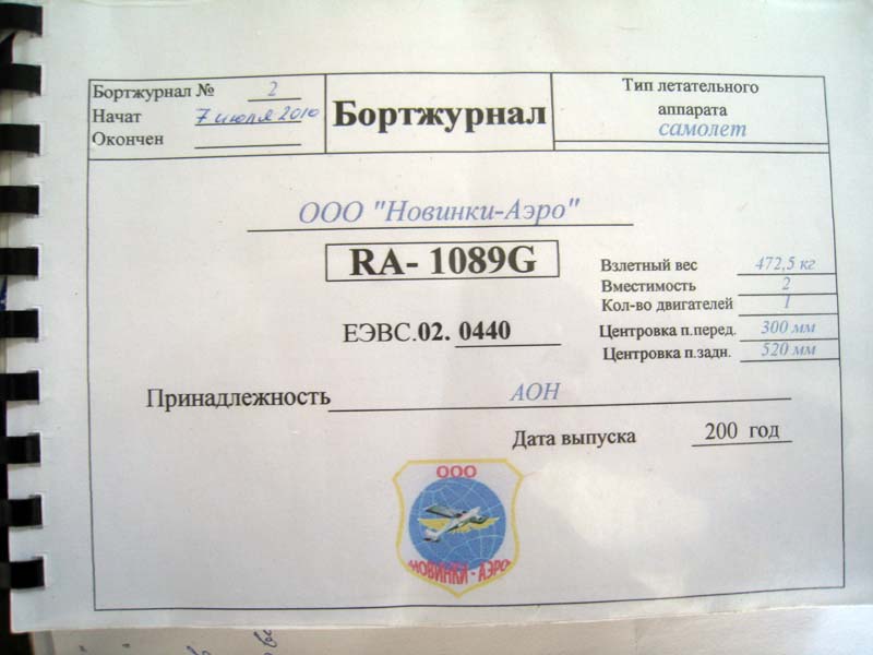 Бортжурнал самолета RA-1089G, на котором мы летали.