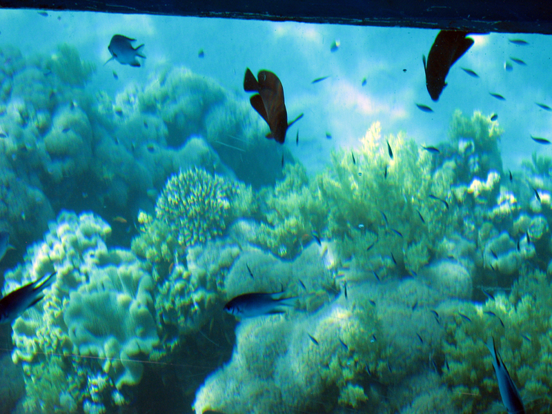 Морское дно через стеклянное дно лодки.