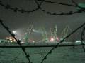 Порт огорожен забором с колючей проволокой. |