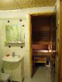 Ванная и дверь в электрическую сауну. |