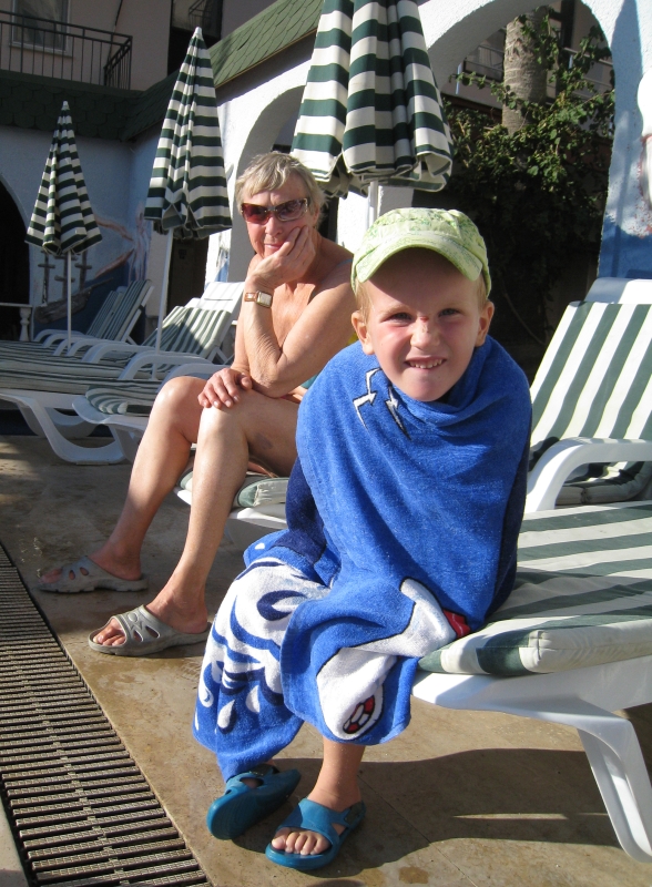 У бассейна.