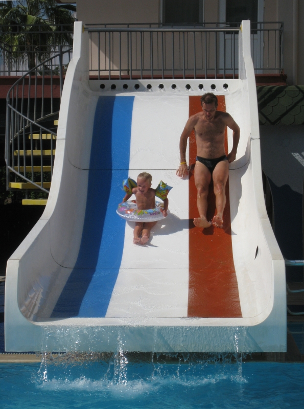 Катание с водной горки.