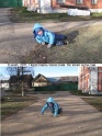 Кадры из видеоролика. Алеша не хочет идти и передвигается ползком.