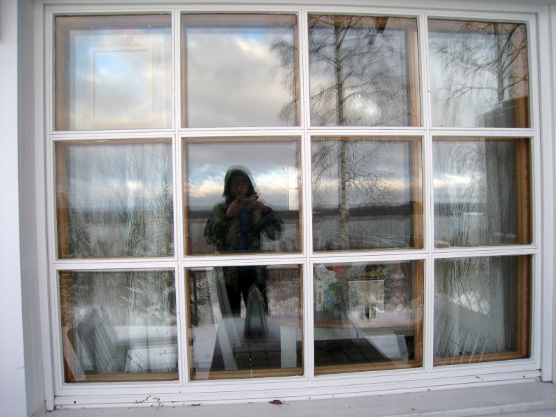 Отражение в окне коттеджа.
