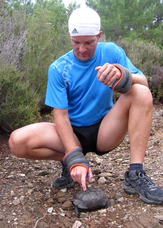 С черепахой.