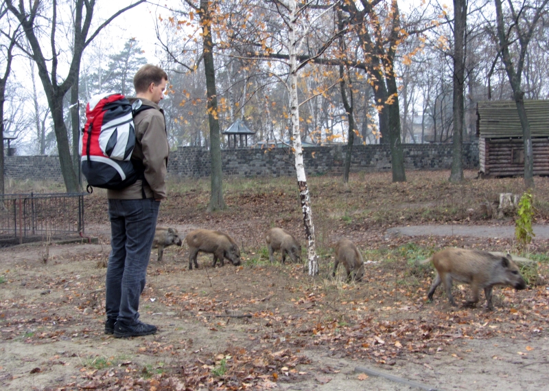 Харьковский зоопарк. Кабанчики свободно гуляют по территории.