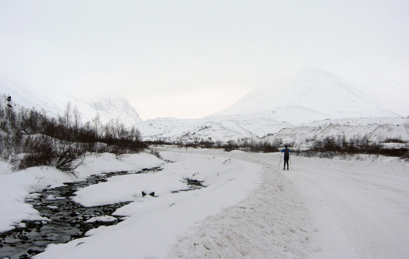 Тупиковая дорога в карьер вдоль реки Вудъяврйок.