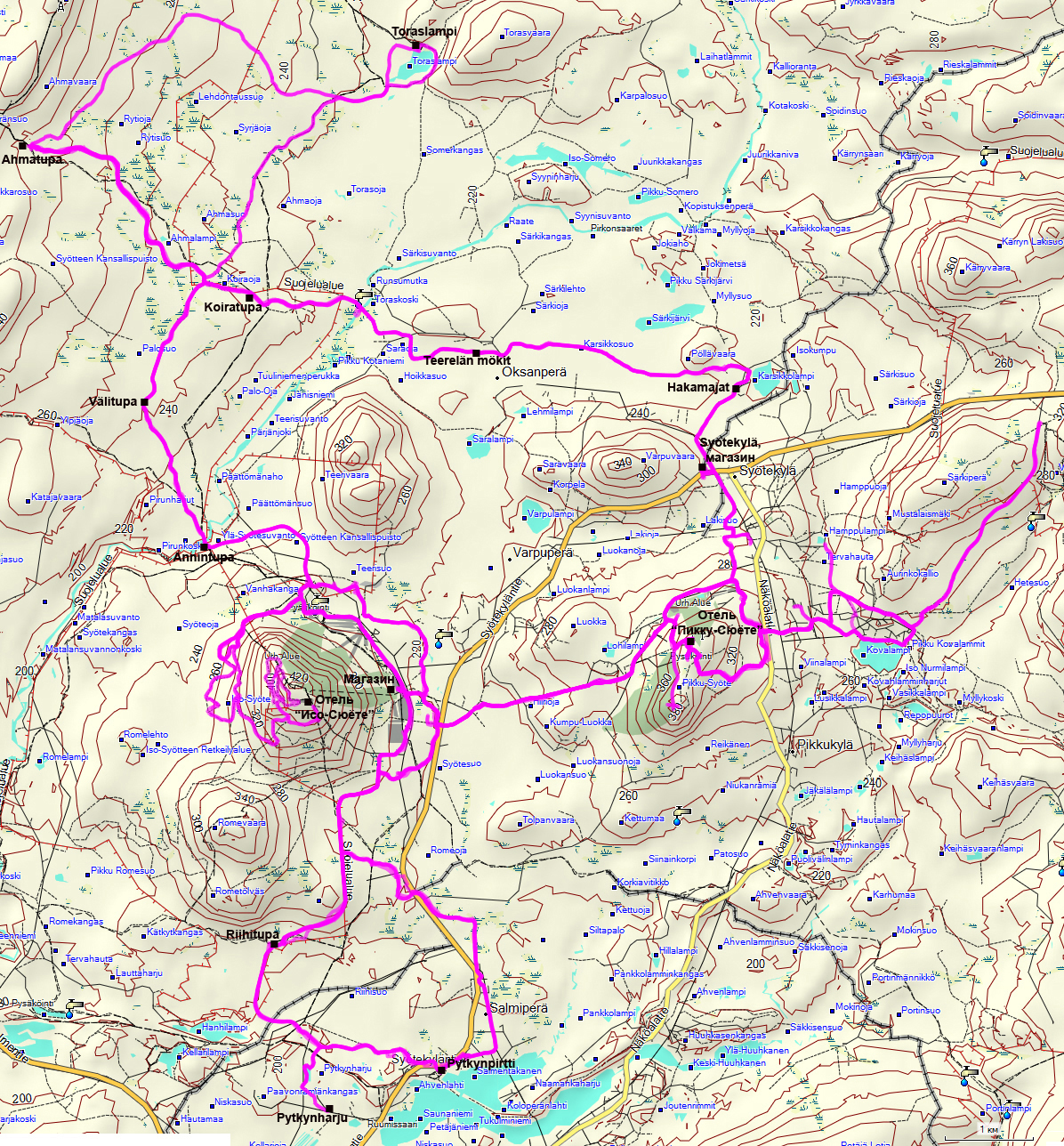 Карта маршрутов и трасс Сюёте (лыжные, снегоходные, велосипедные, пешеходные, квадроциклетные, лодочные, .pdf)