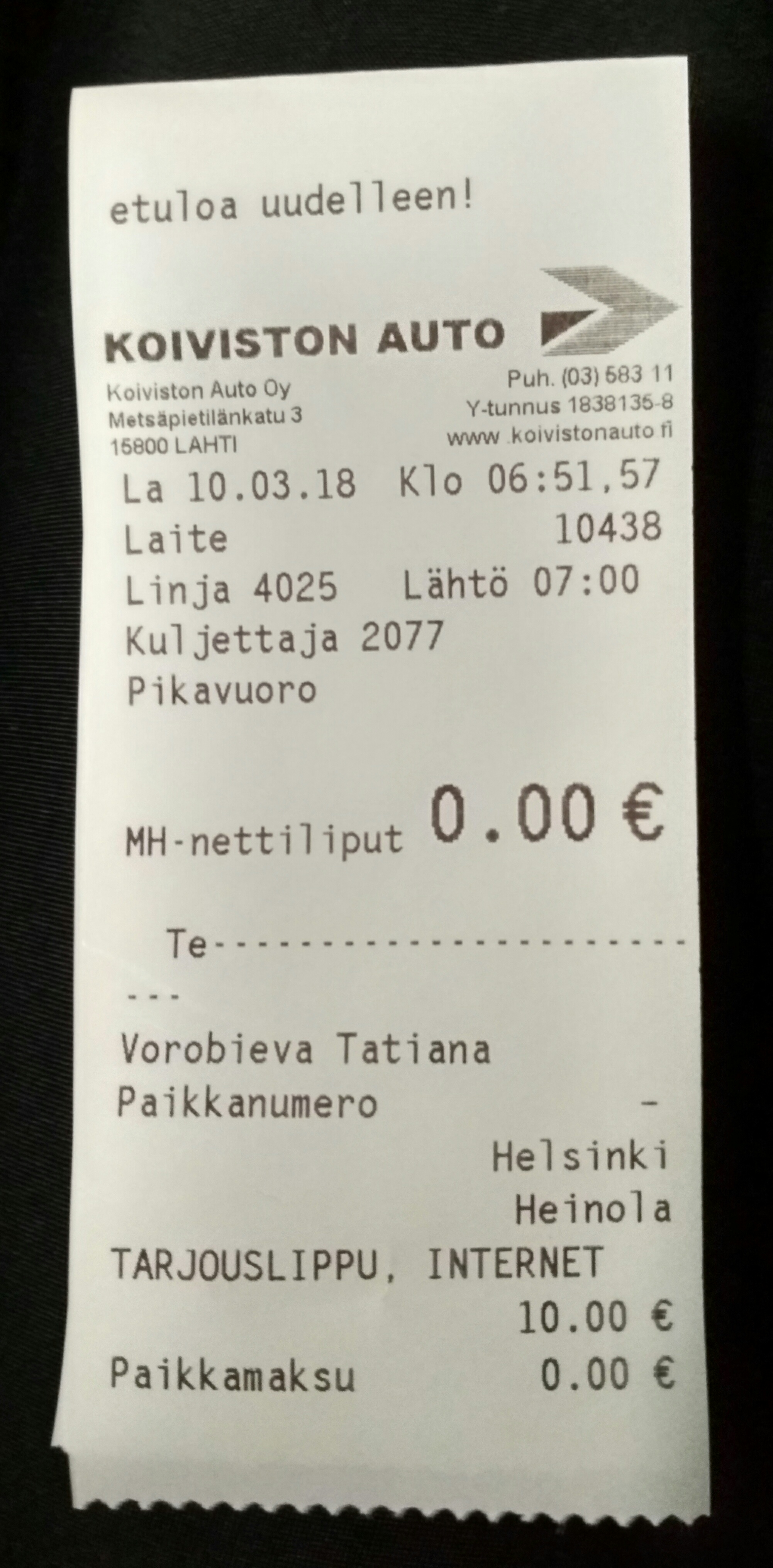 Заранее оплаченный билет на автобус Хельсинки - Хейнола.