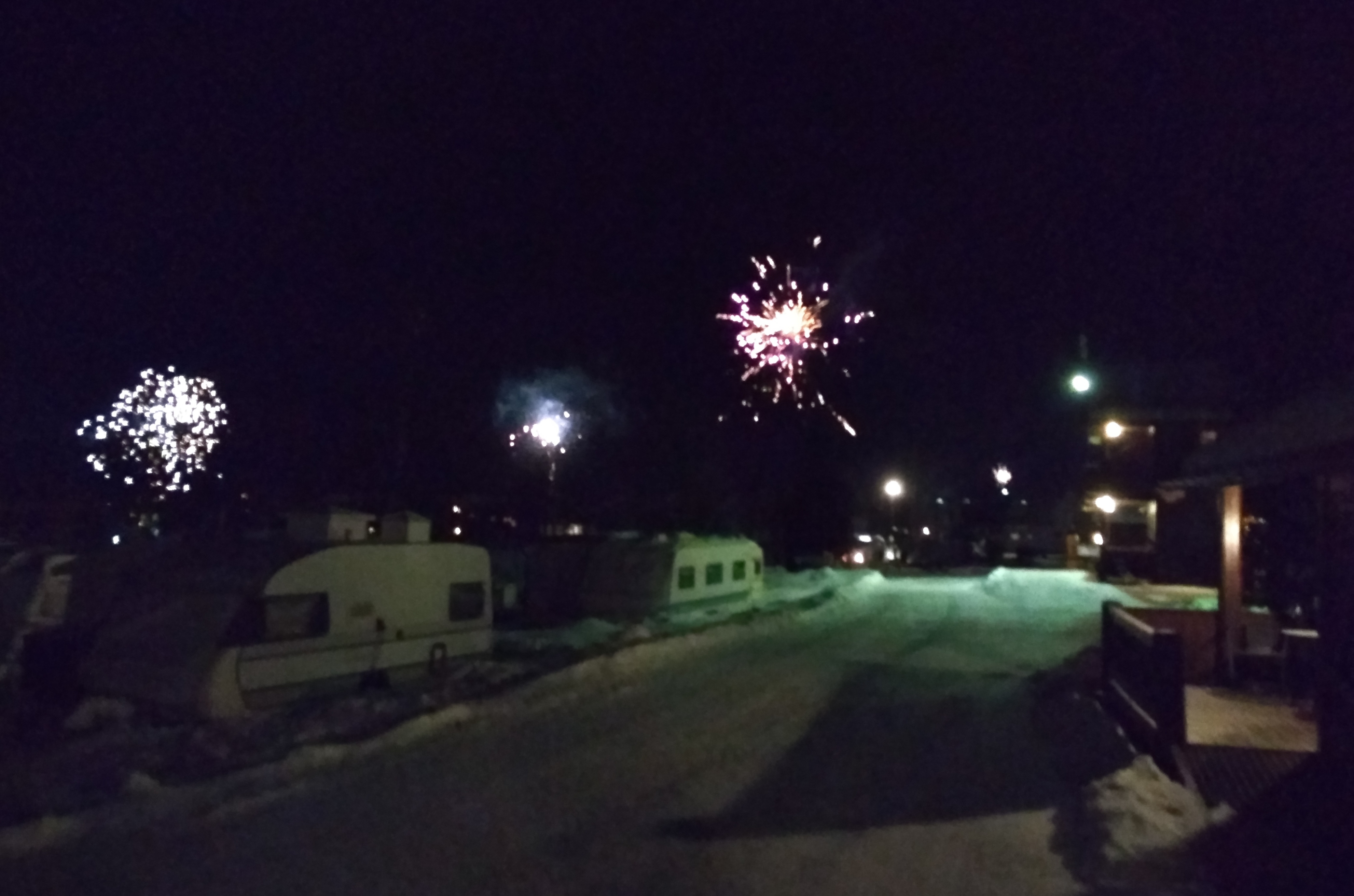 Фейерверки в новогоднюю ночь, вид с крыльца нашего коттеджа.