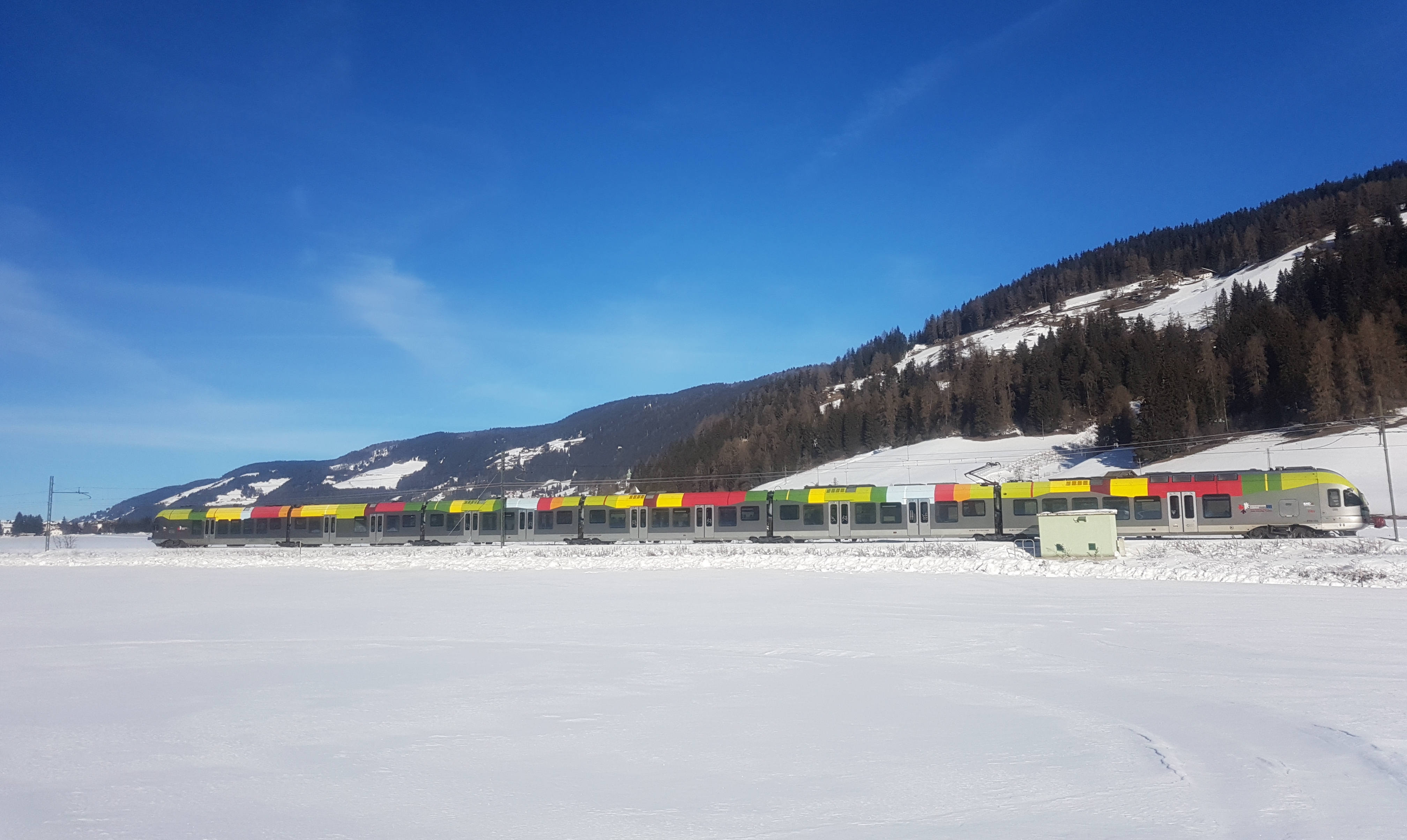 По долине Пустерталь каждые полчаса ходит поезд.