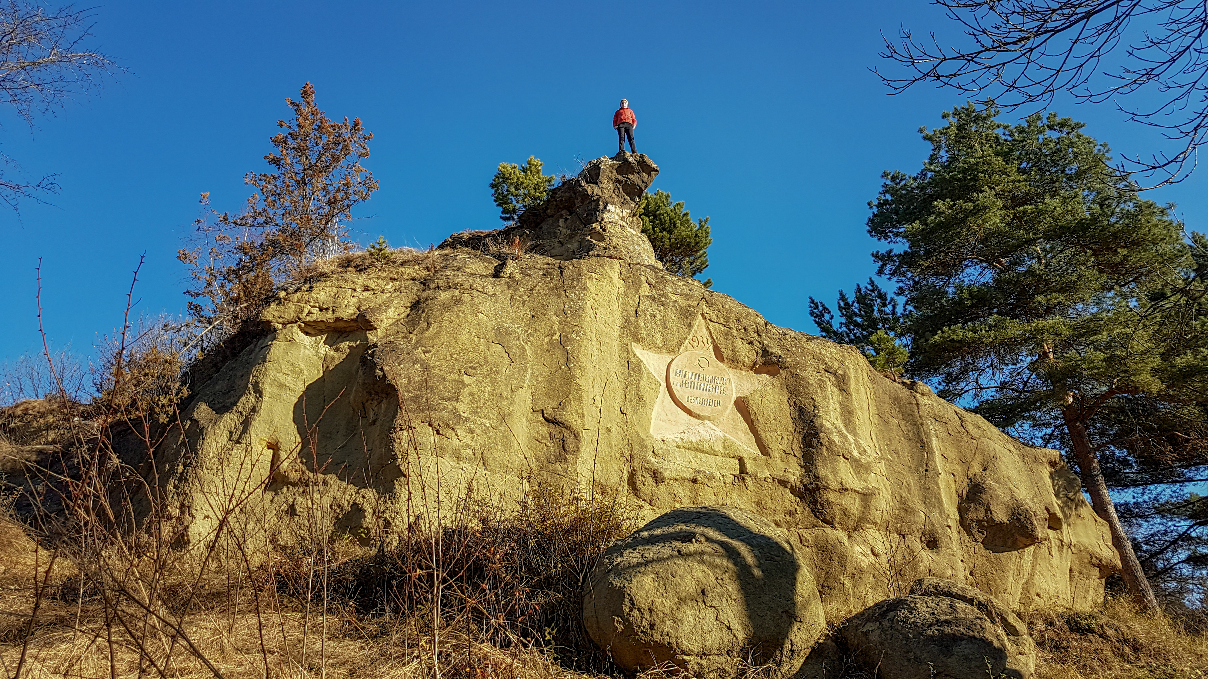 Серые камни и памятник погибшим в февральском восстании 1934 г. в Австрии.