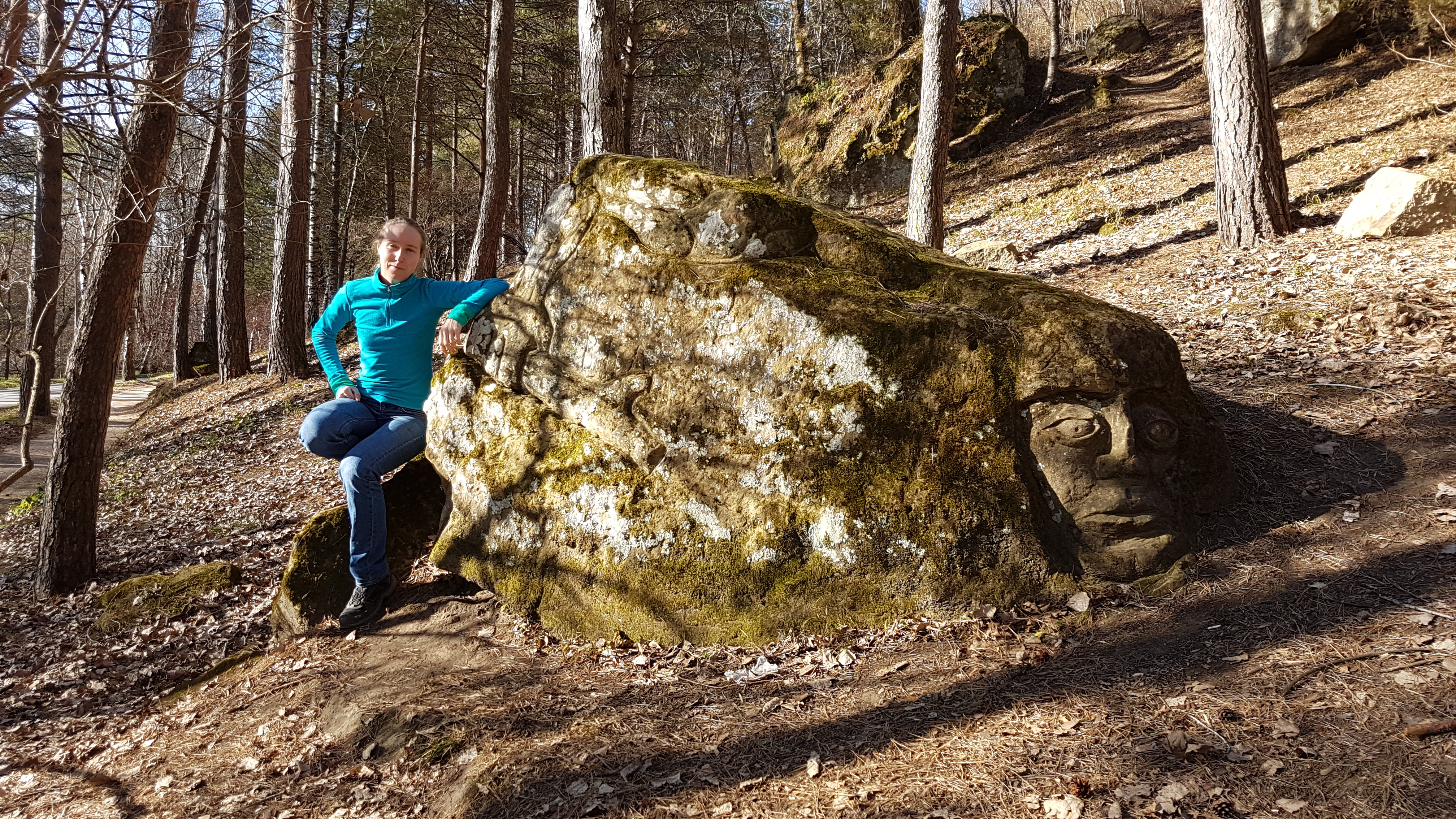 Каменная скульптура с лицом.