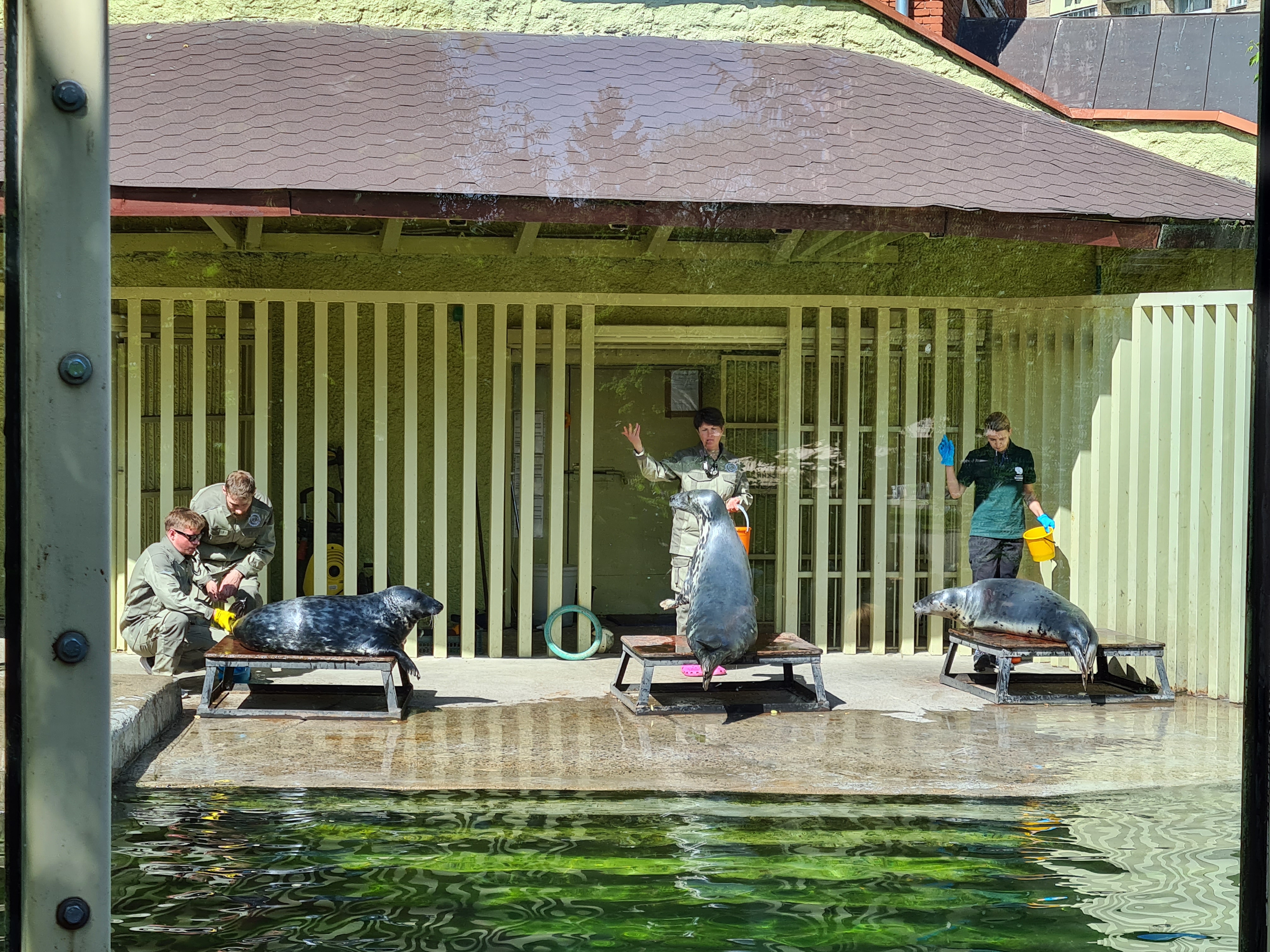 Кормление серых тюленей.