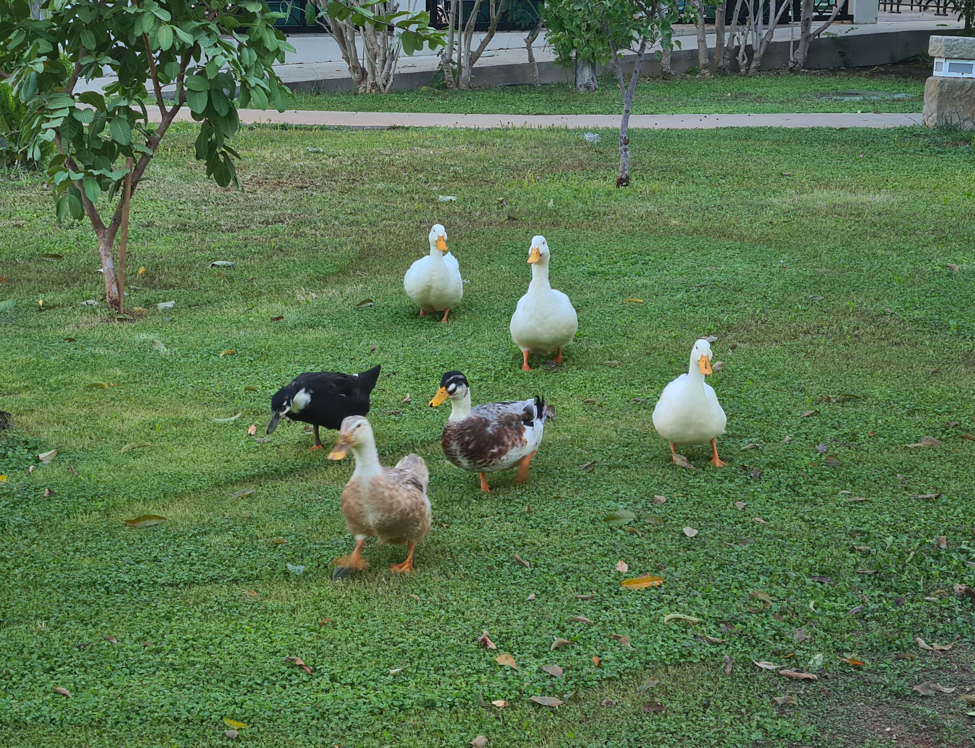 Уток каждое утро выпускали погулять, пока чистили их загончик.