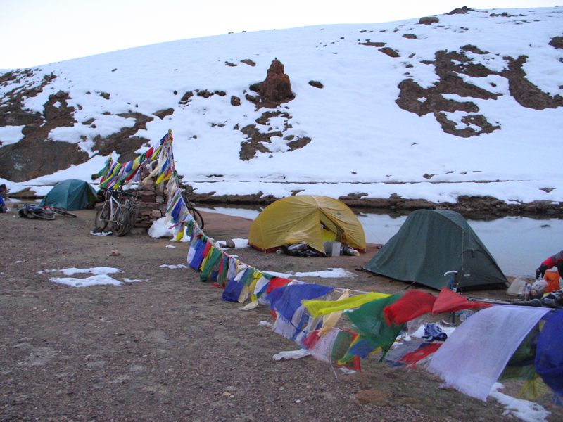 Утро 6 окт. на озере Chandra Tal, высота 4300 м. Когда встали, было -7 градусов, когда выезжали - +4.