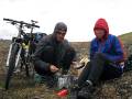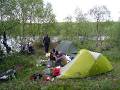 Когда мы с Димой уже уехали с этого обеда, а Леша с Андрюхой еще варили обед на горелке, художественно развесив носки для просушки, приехал автобус туристов, и небритые колдыри попали под прицелы фотоаппаратов как одна из местных достопримечательностей.